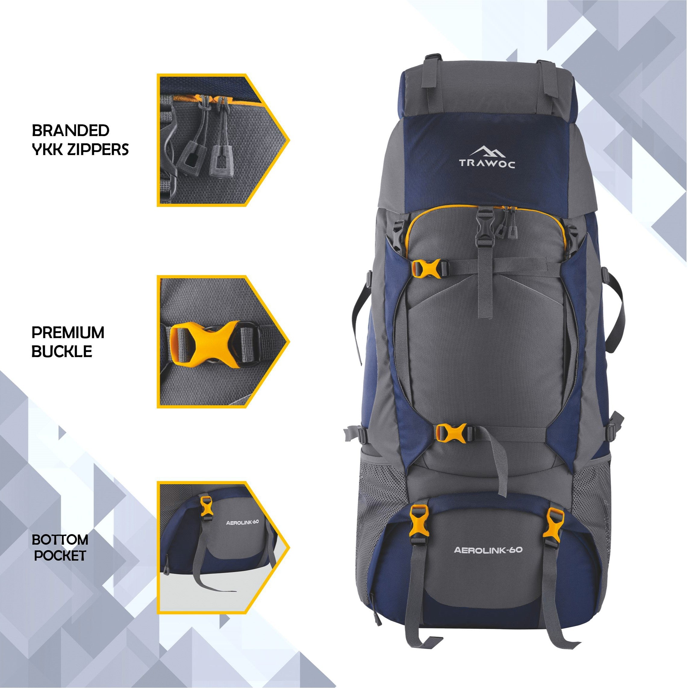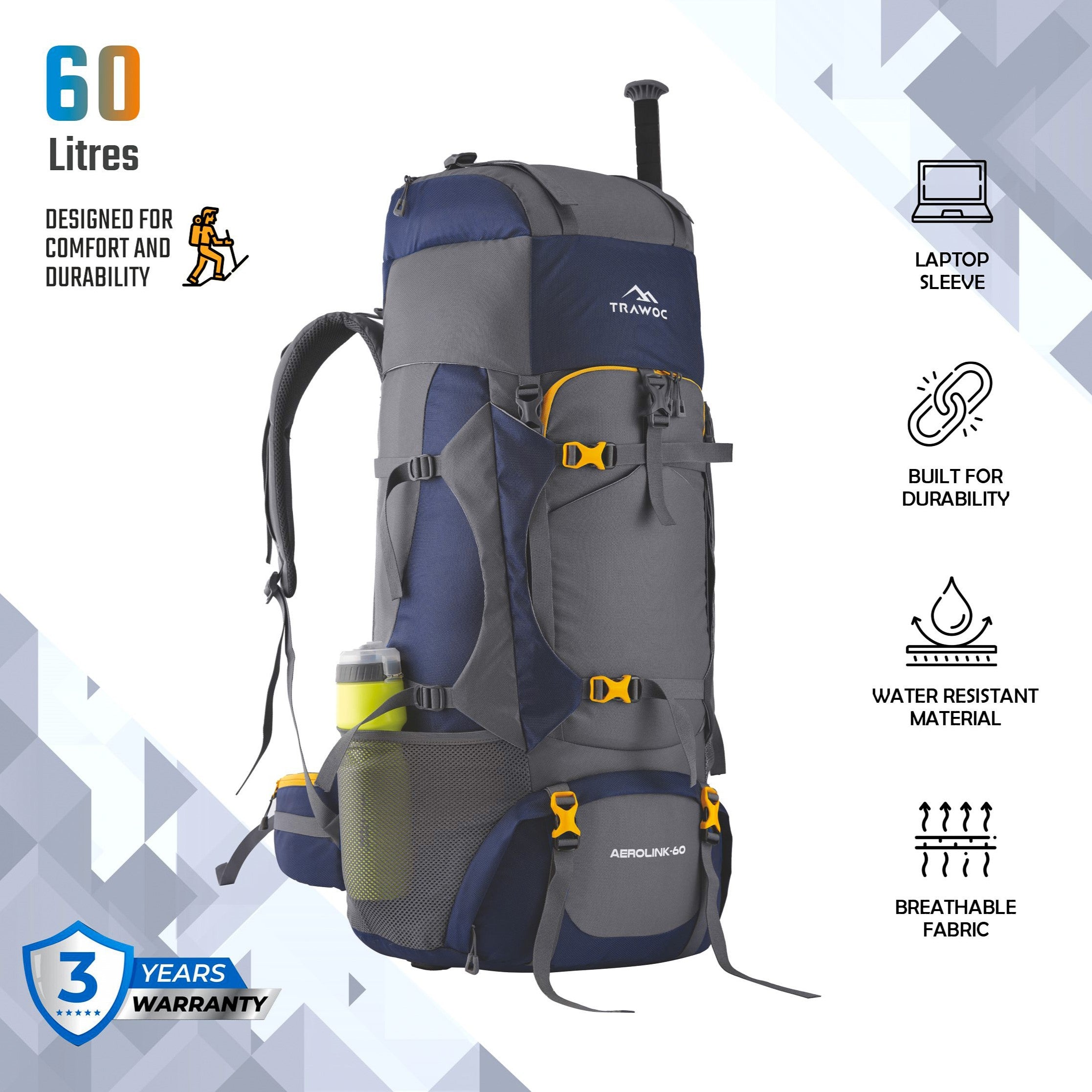 Aerolink 60 L Backpack with Lightweight Build & Water - Resistant Fabric –Grey - TRAWOC