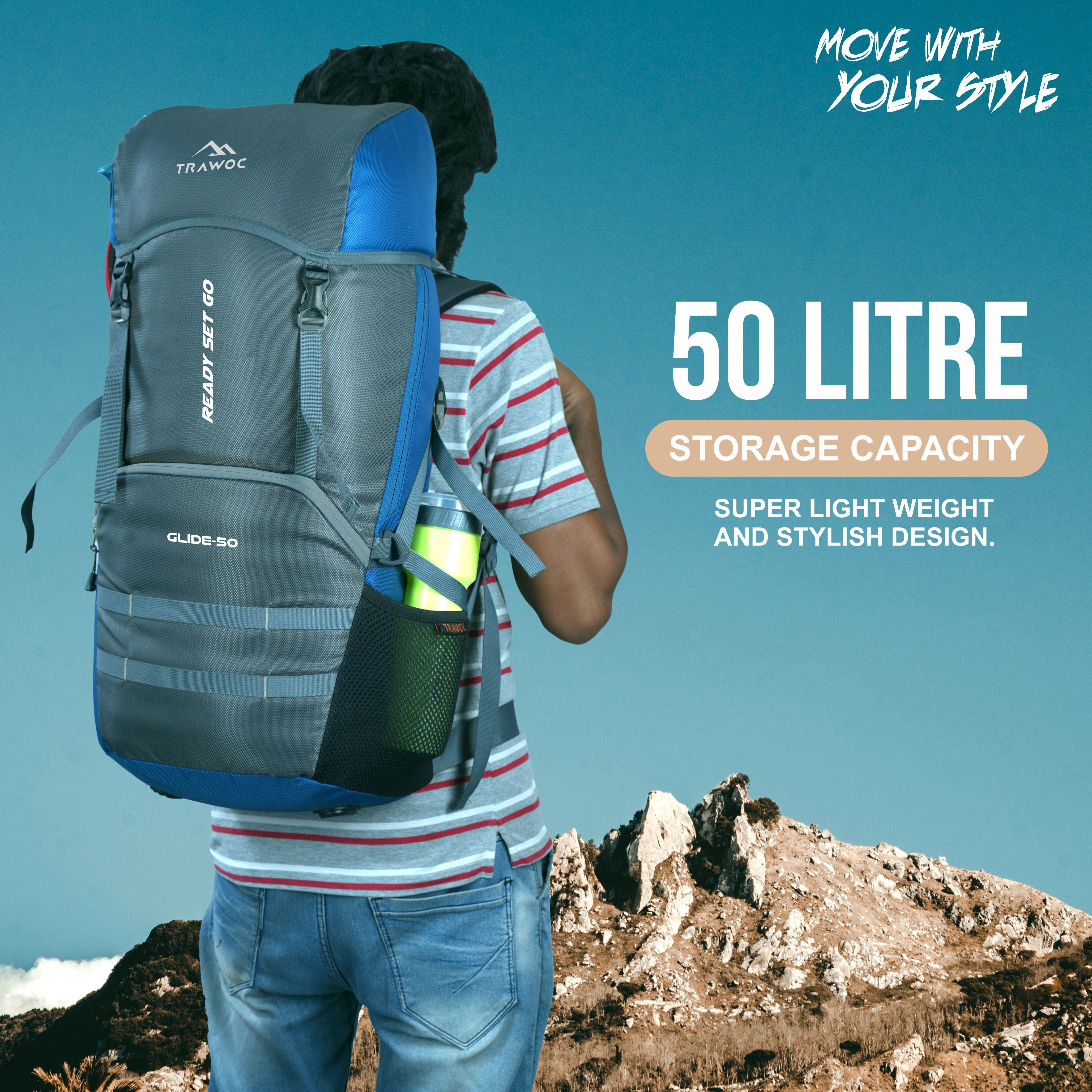 The 50 Liter capacity travel backpack provides enough space for outdoor travel, camping, hiking, and fishing. A perfect travel bag for weekend vacations or for 2-3 days trip. Dimension: 70 x 32 x 22 Cm.
