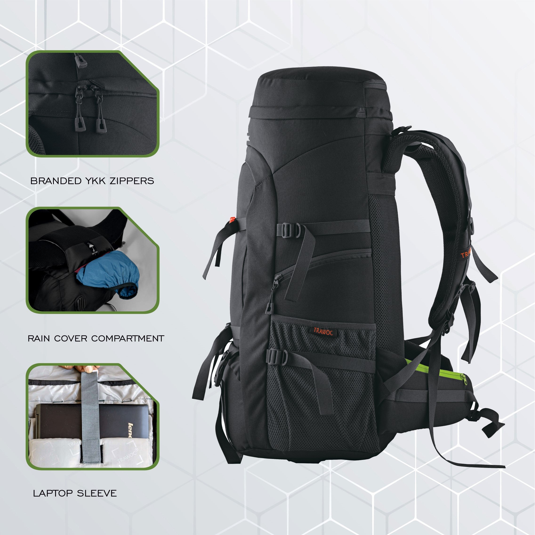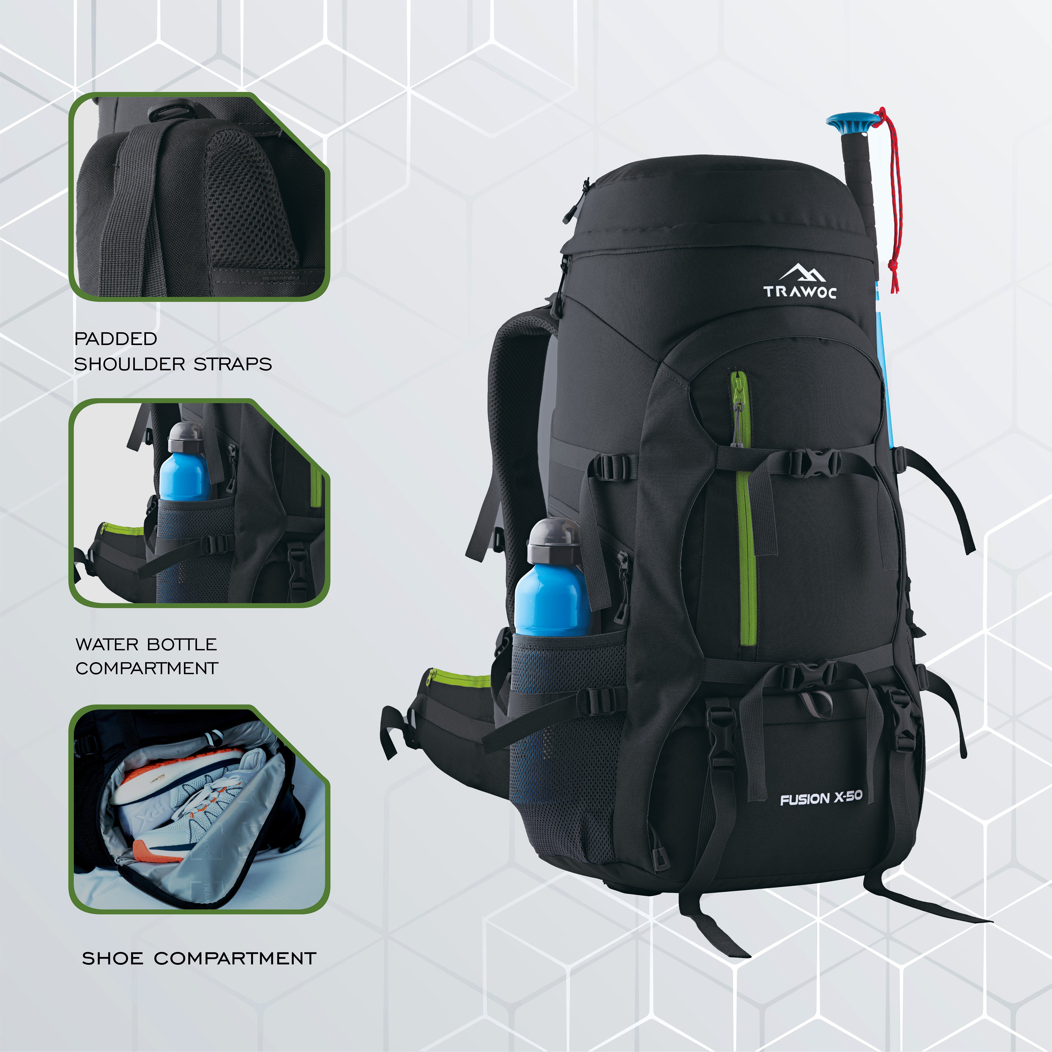 Front & Top Loading: 50L rucksack designed for easy access with both front and top openings, perfect for hiking, trekking, and travel.