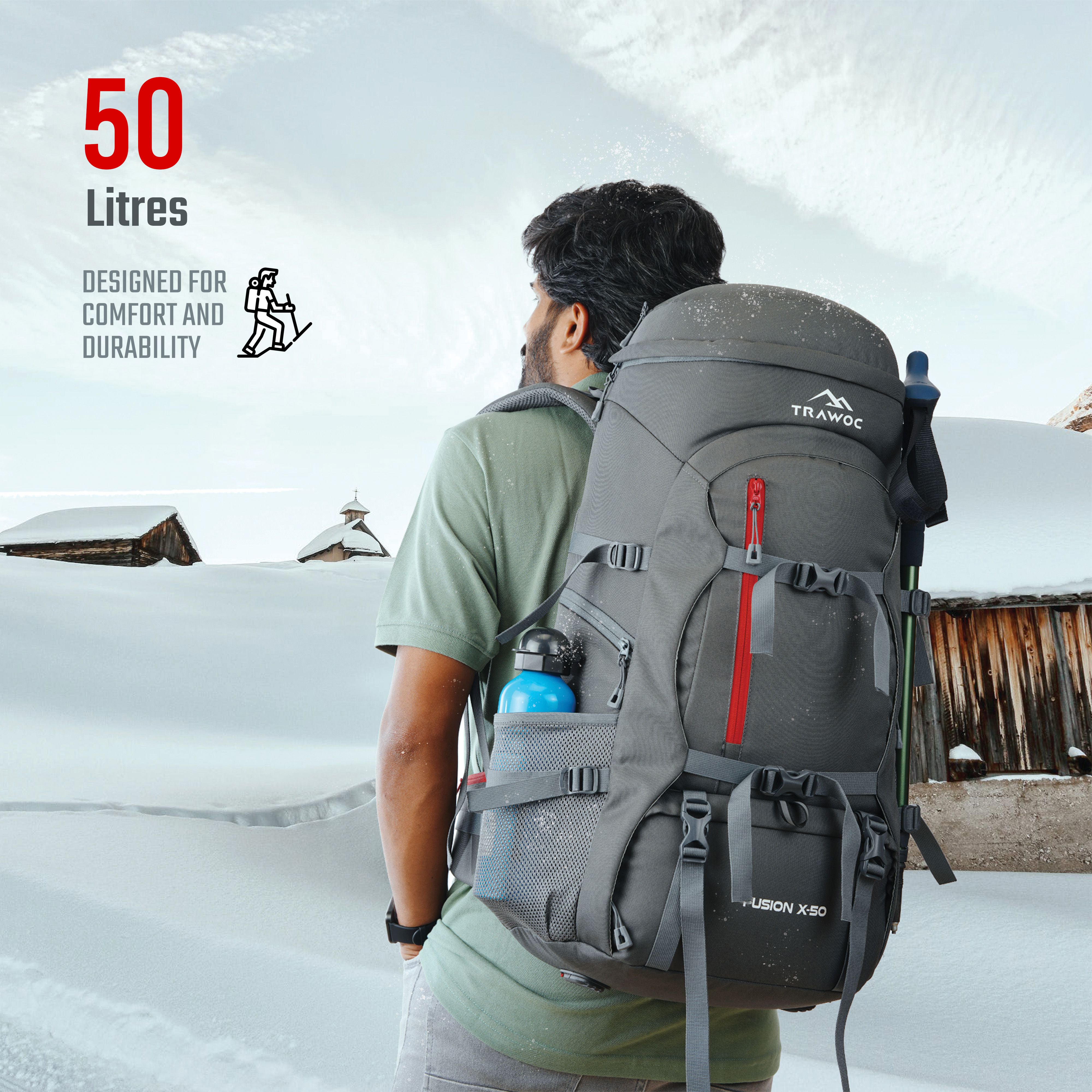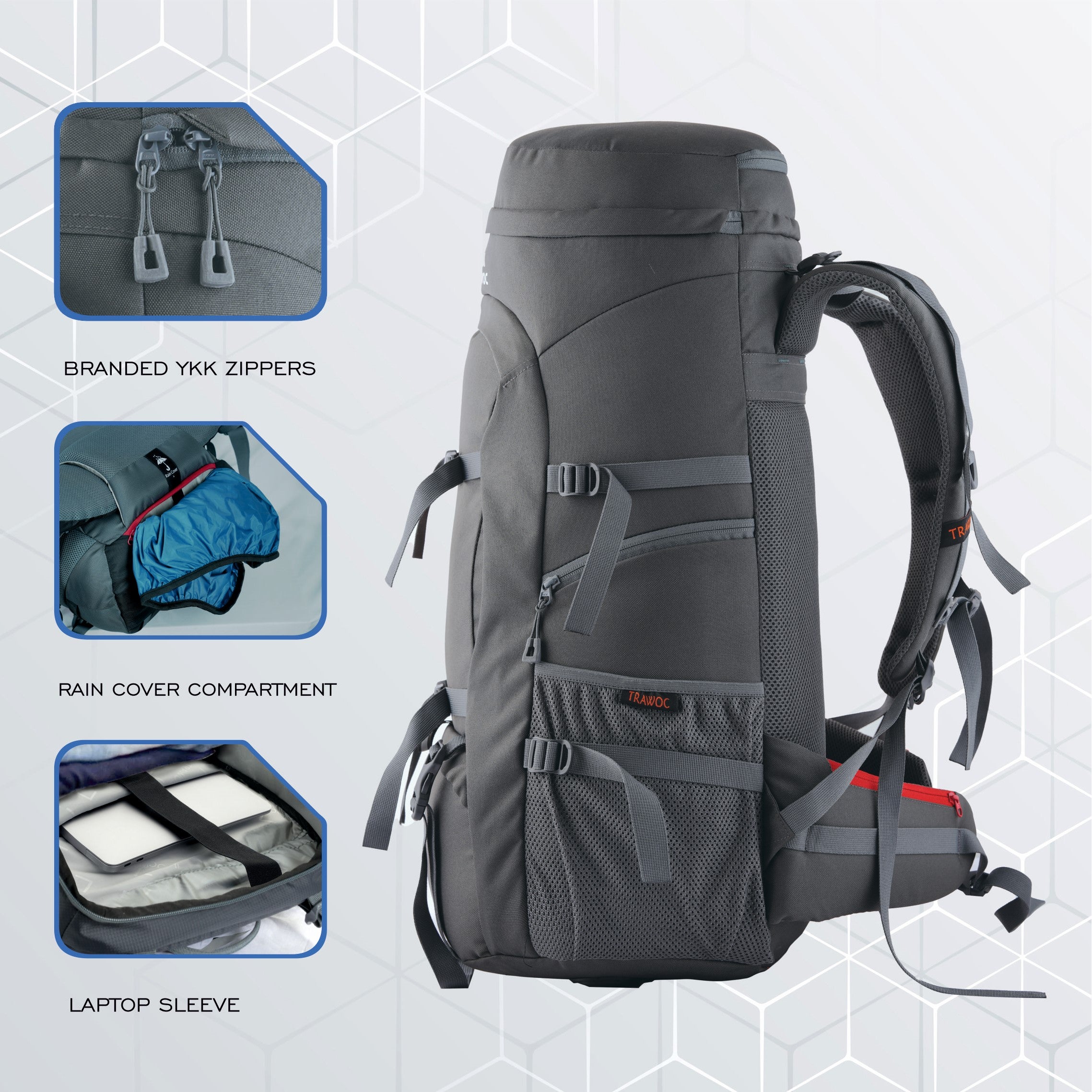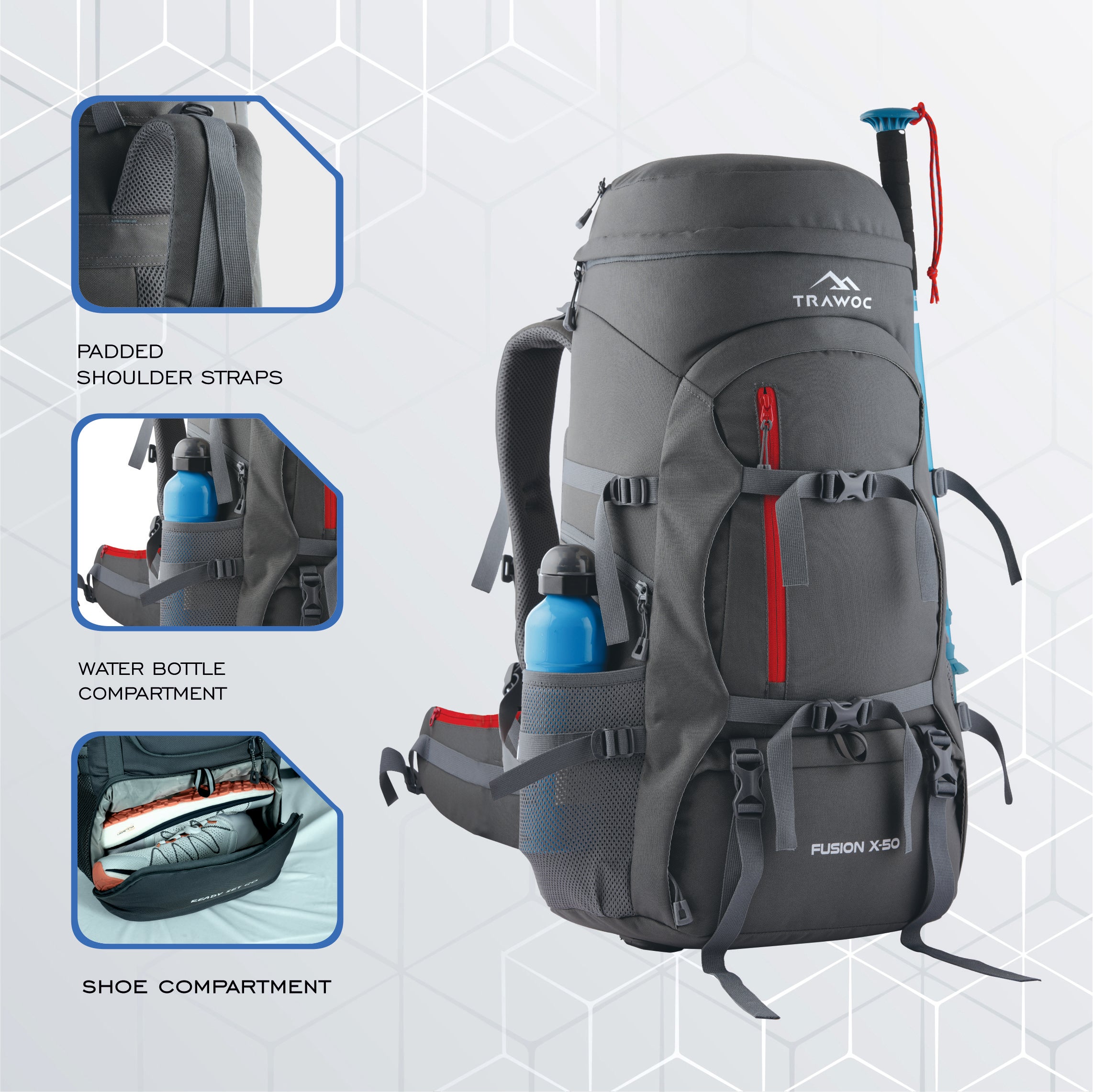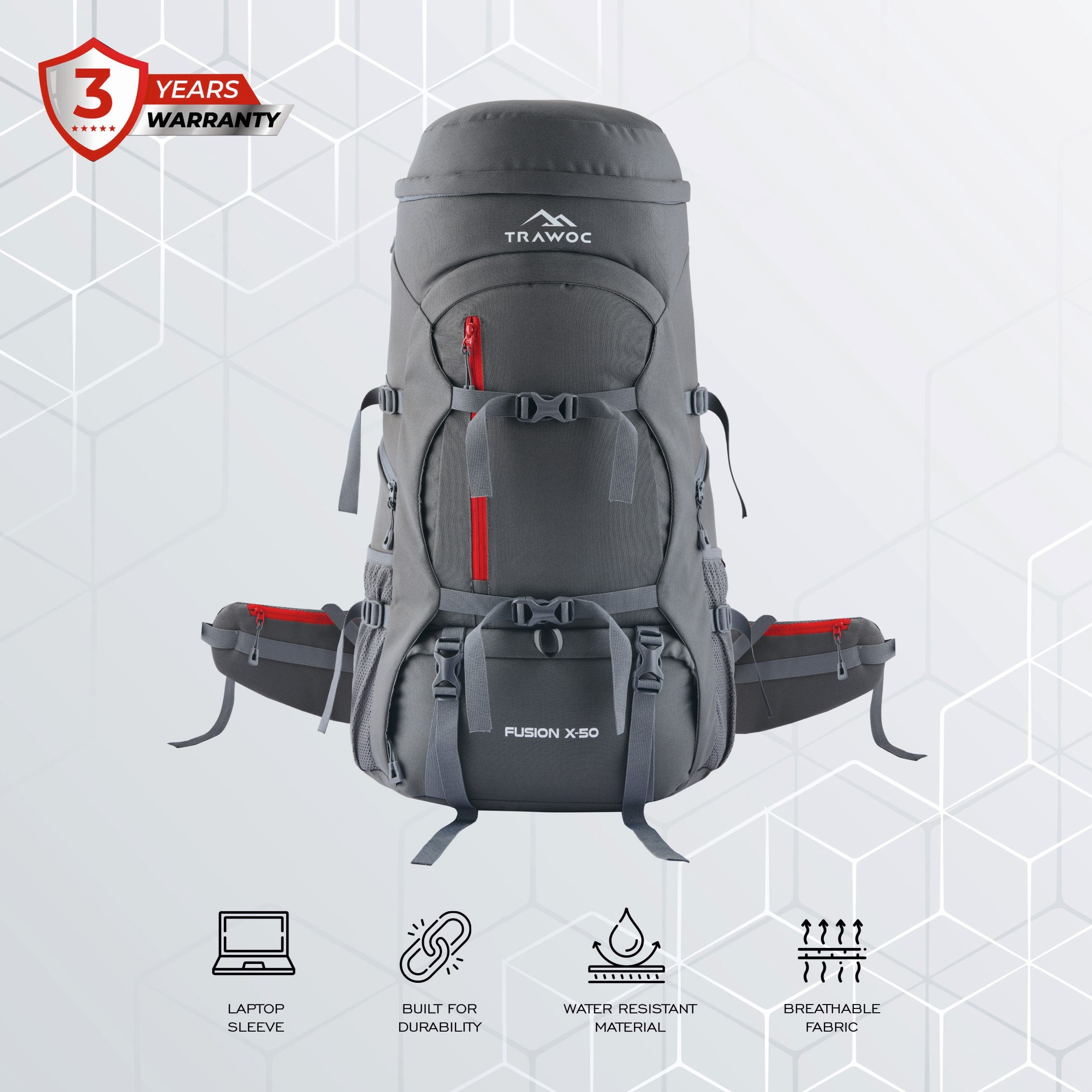 This 50 Liter large backpack comes with a LAPTOP COMPARTMENT inside the main compartment. It has got several buckles, straps and convenient pockets that make it suitable for adjusting a lot of travel stuff inside this large trekking rucksack bag.