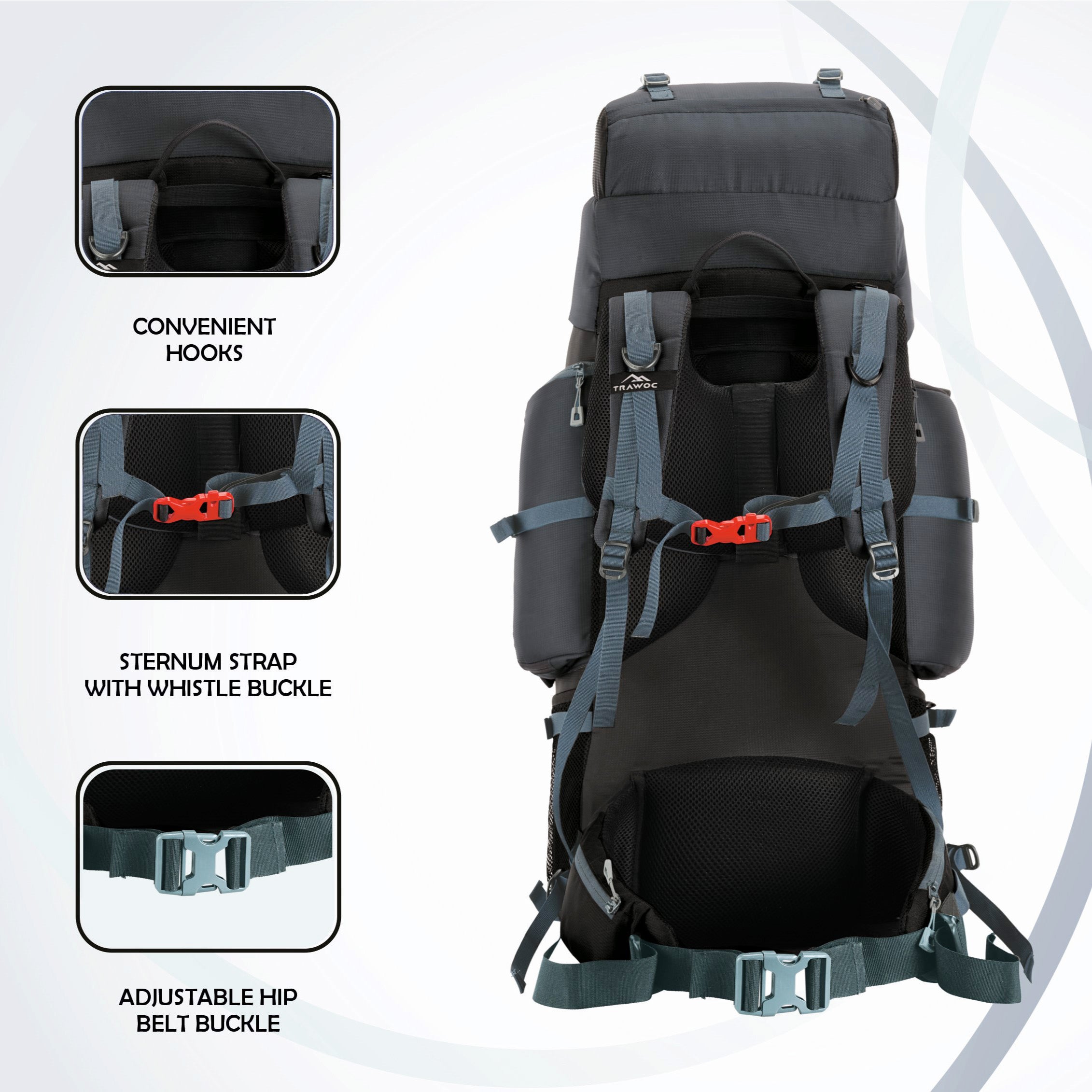 Breathable back padding ensures superior airflow, keeping you cool and sweat-free during long treks.