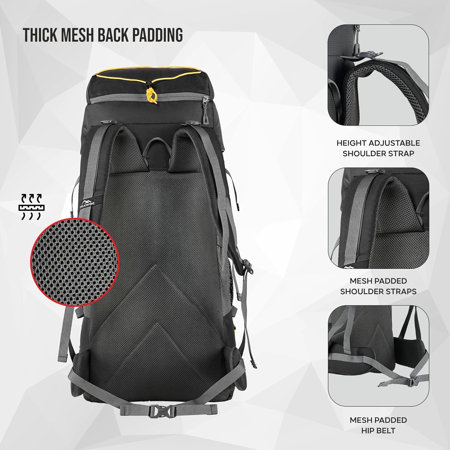 Flyspeck 65 L Travel Backpack with Lightweight Build & with Multi - Pocket Design – Black - TRAWOC