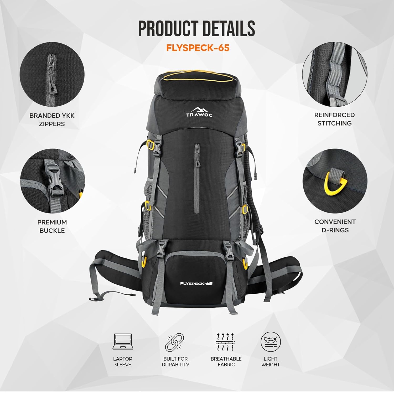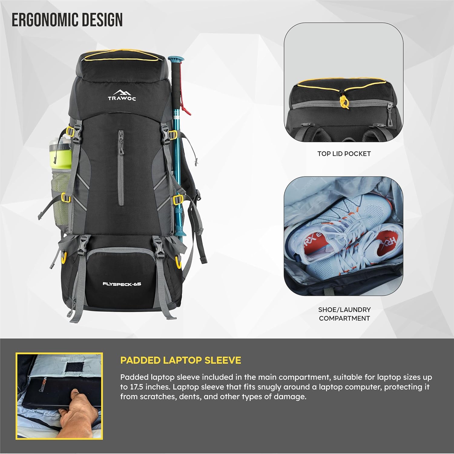The hiking backpack is 65 litres, which means it is triple times the normal requirement of a backpack.