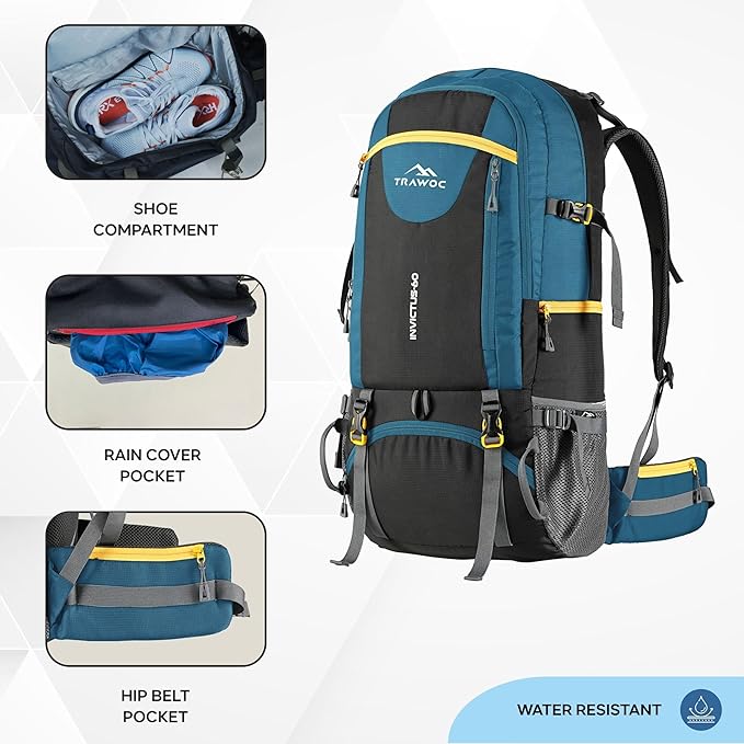 Experience the Trawoc 60L Adjustable Backpack, designed to withstand tough outdoor conditions. Made from water-resistant material, it keeps your gear dry and secure, making it ideal for hiking, trekking, and camping.