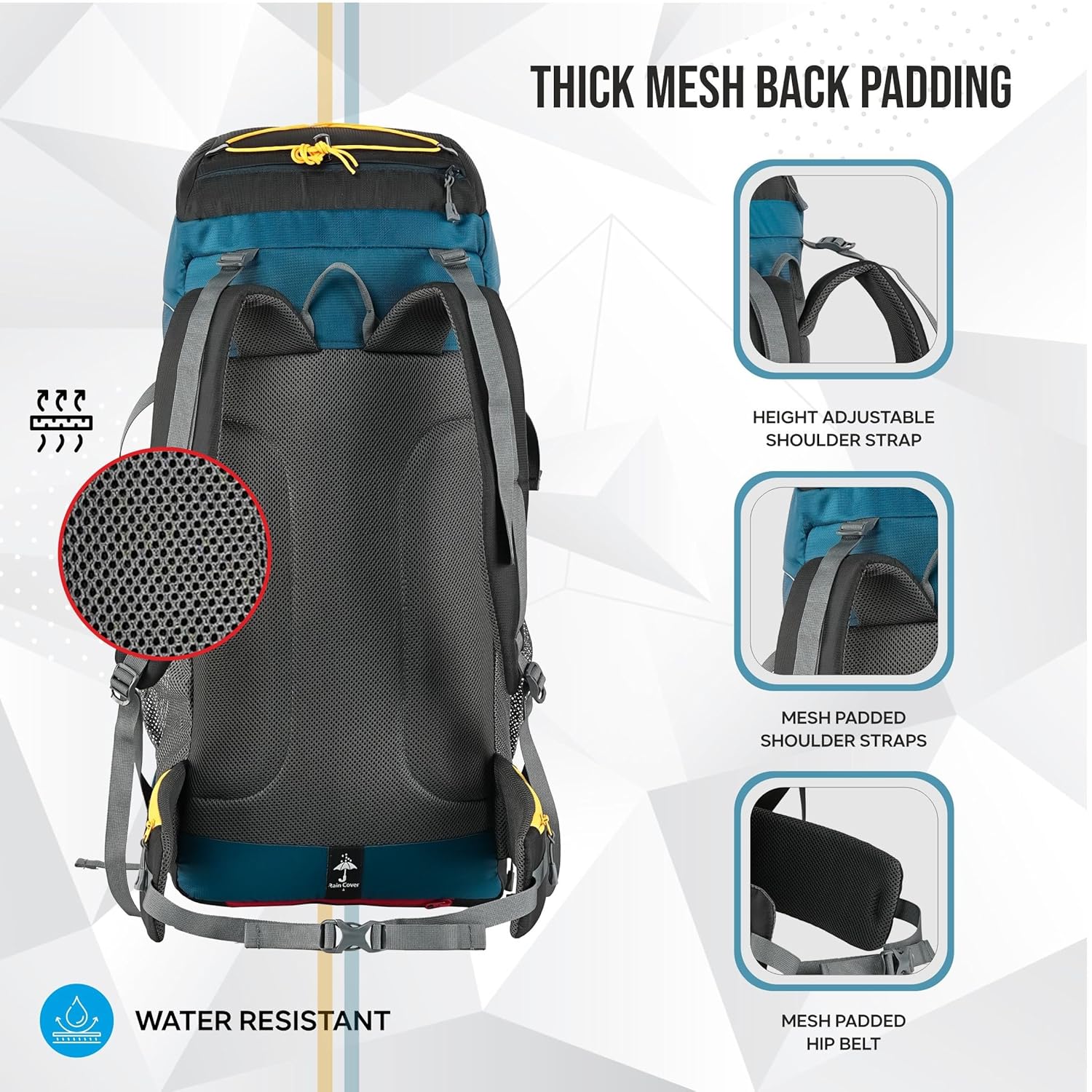 TREKELITE 60L Backpack Hiking Trekking Rucksack with Water Proof Rain Cover - EnglishBlue - TRAWOC