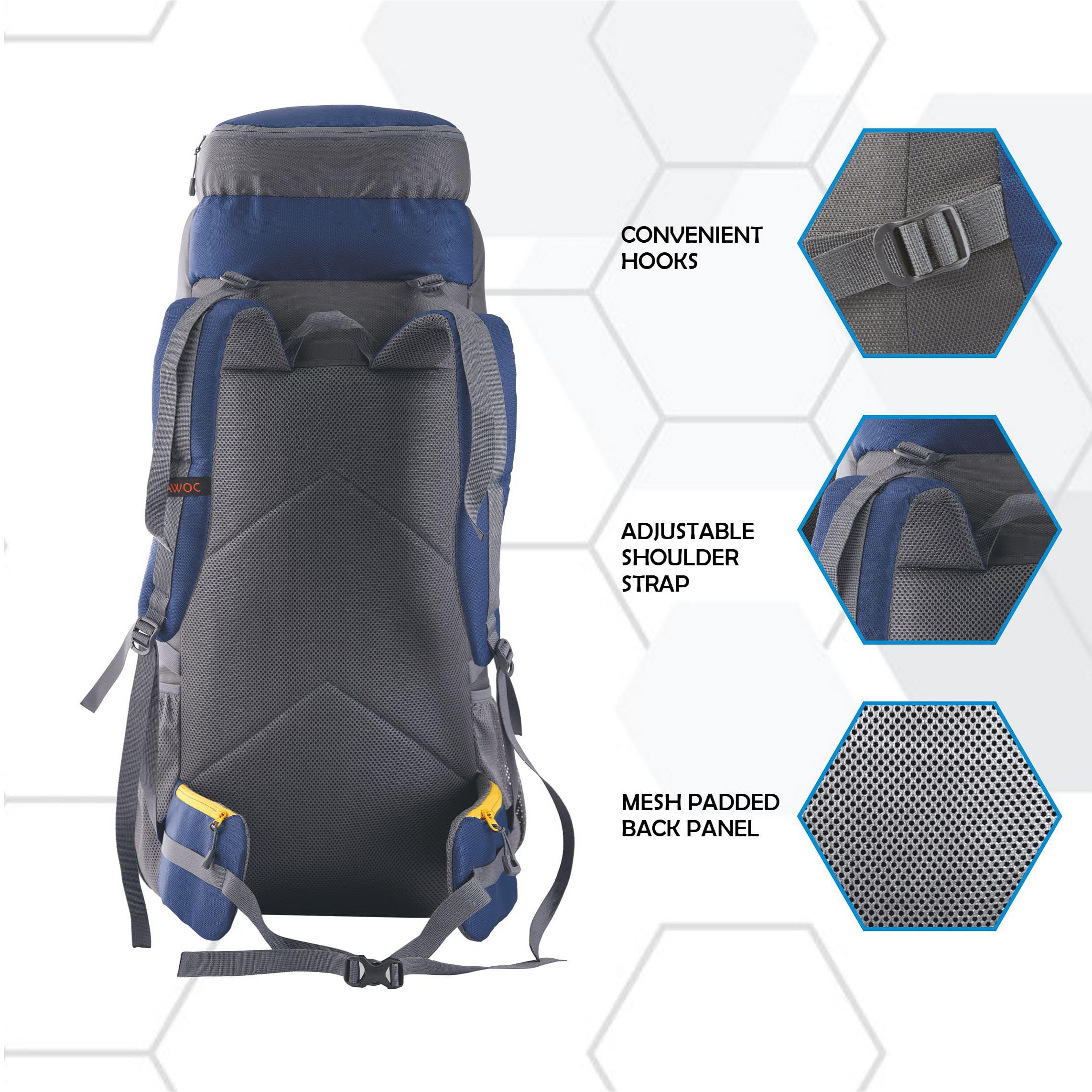 The hiking backpack is 60 litres, which means it is triple times the normal requirement of a backpack. This backpack bag comes with a convenient LAPTOP SLEEVE inside the main compartment.