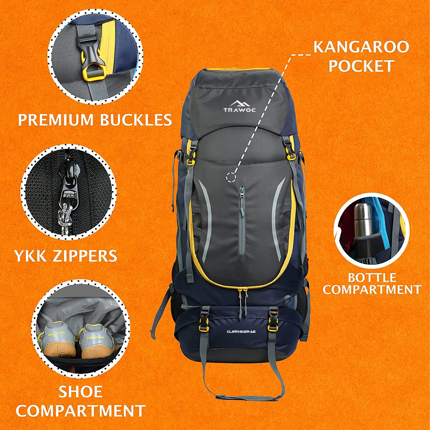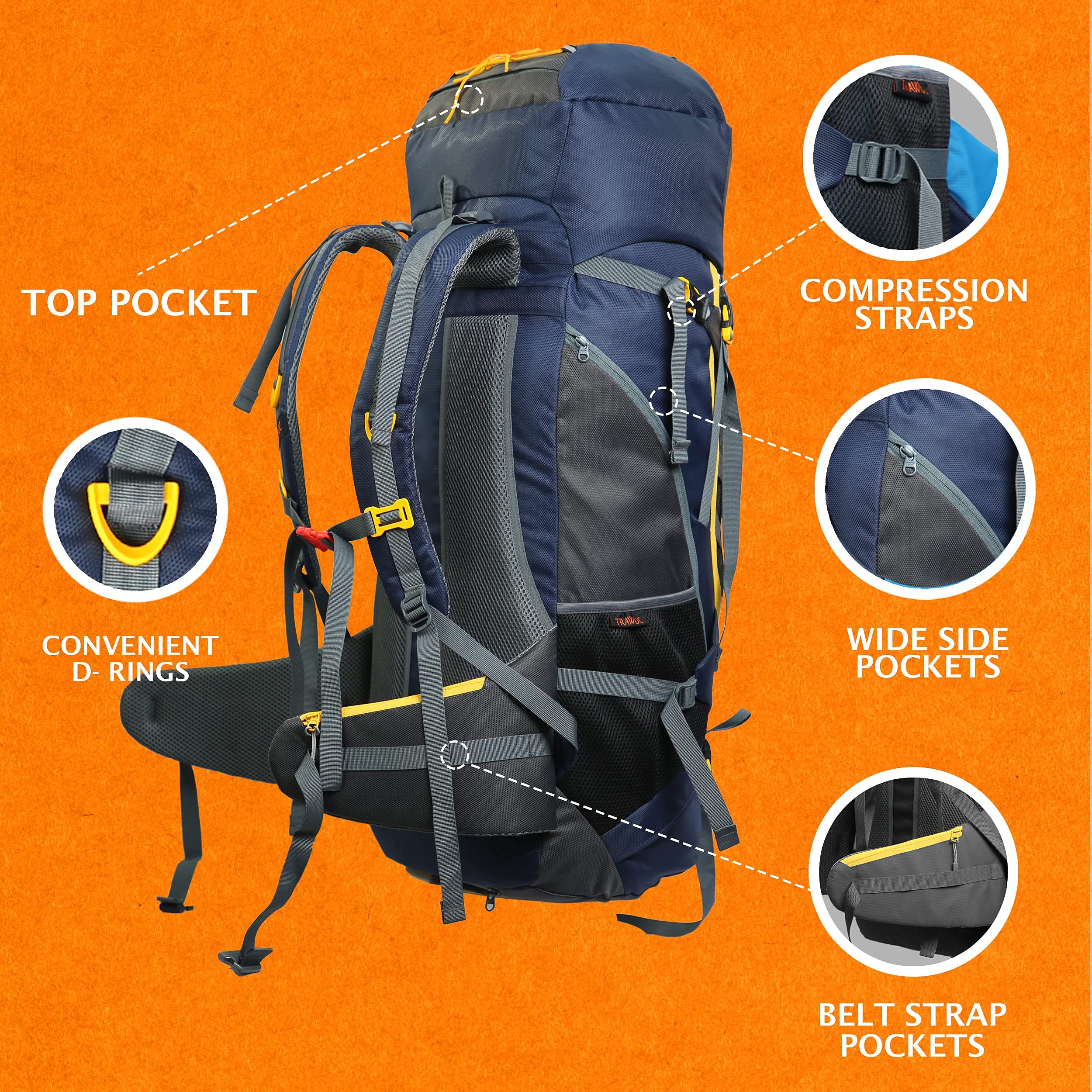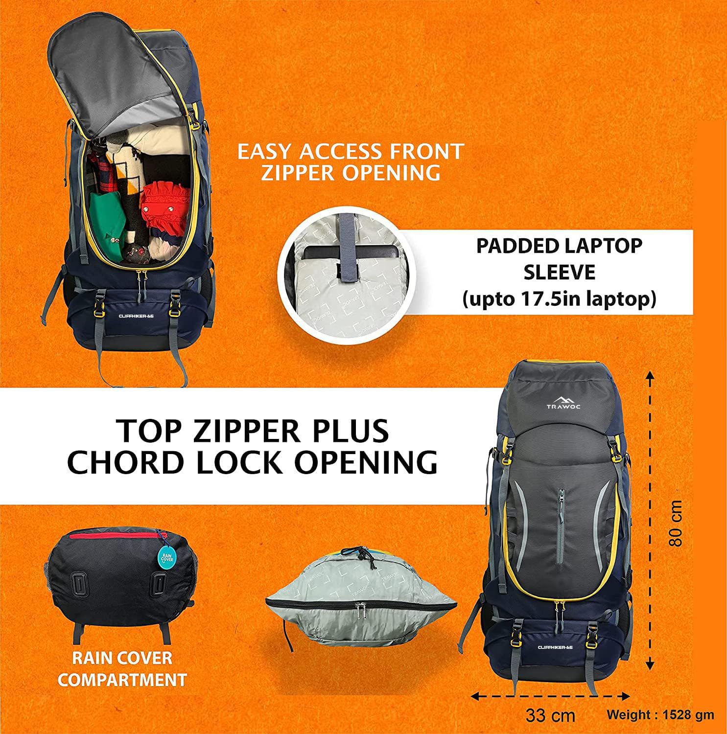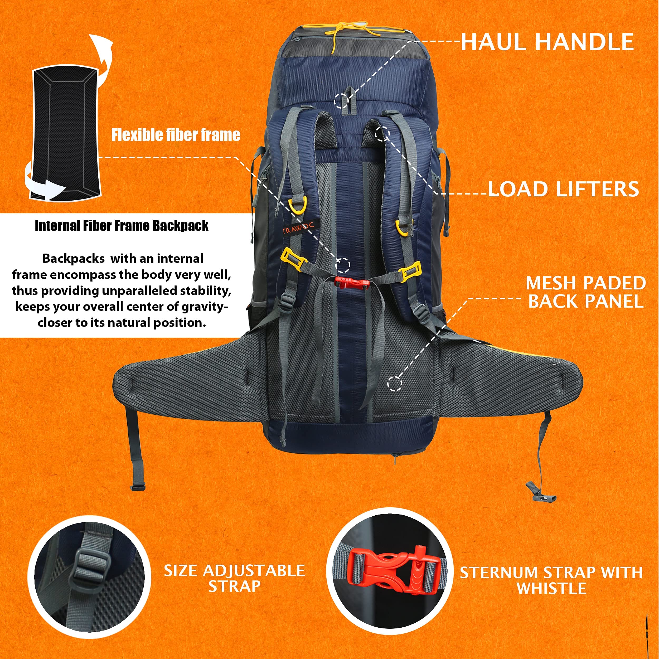Designed for youth and adults, this feature-rich rucksack is perfect for long trekking expeditions, backpacking trips, and adventure travel. Whether you're exploring mountain trails, setting up camp in the wilderness, or traveling across different terrains, the Trawoc 65L backpack is your reliable travel companion.