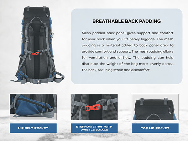 Breathable back padding ensures superior airflow, keeping you cool and sweat-free during long treks.
