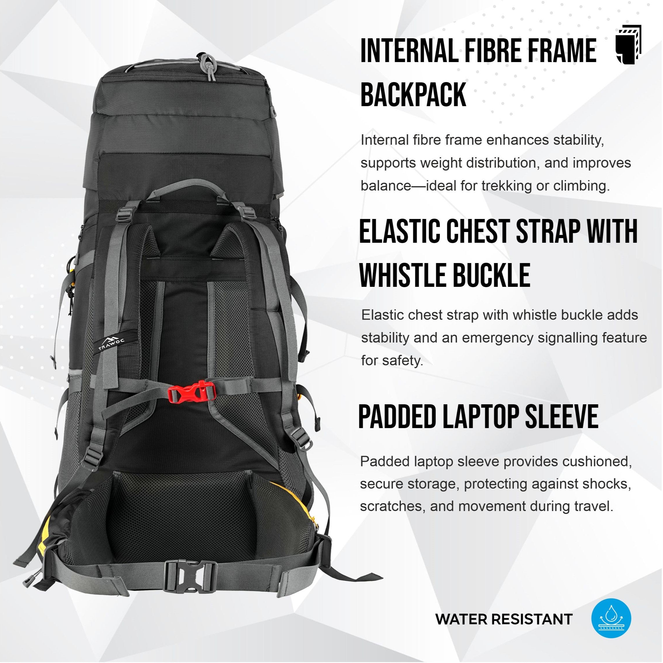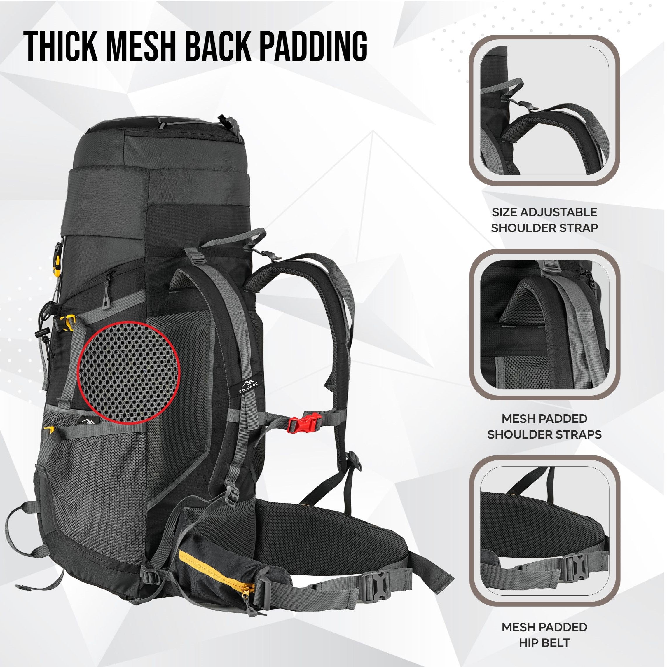 Breathable back padding ensures superior airflow, keeping you cool and sweat-free during long treks.