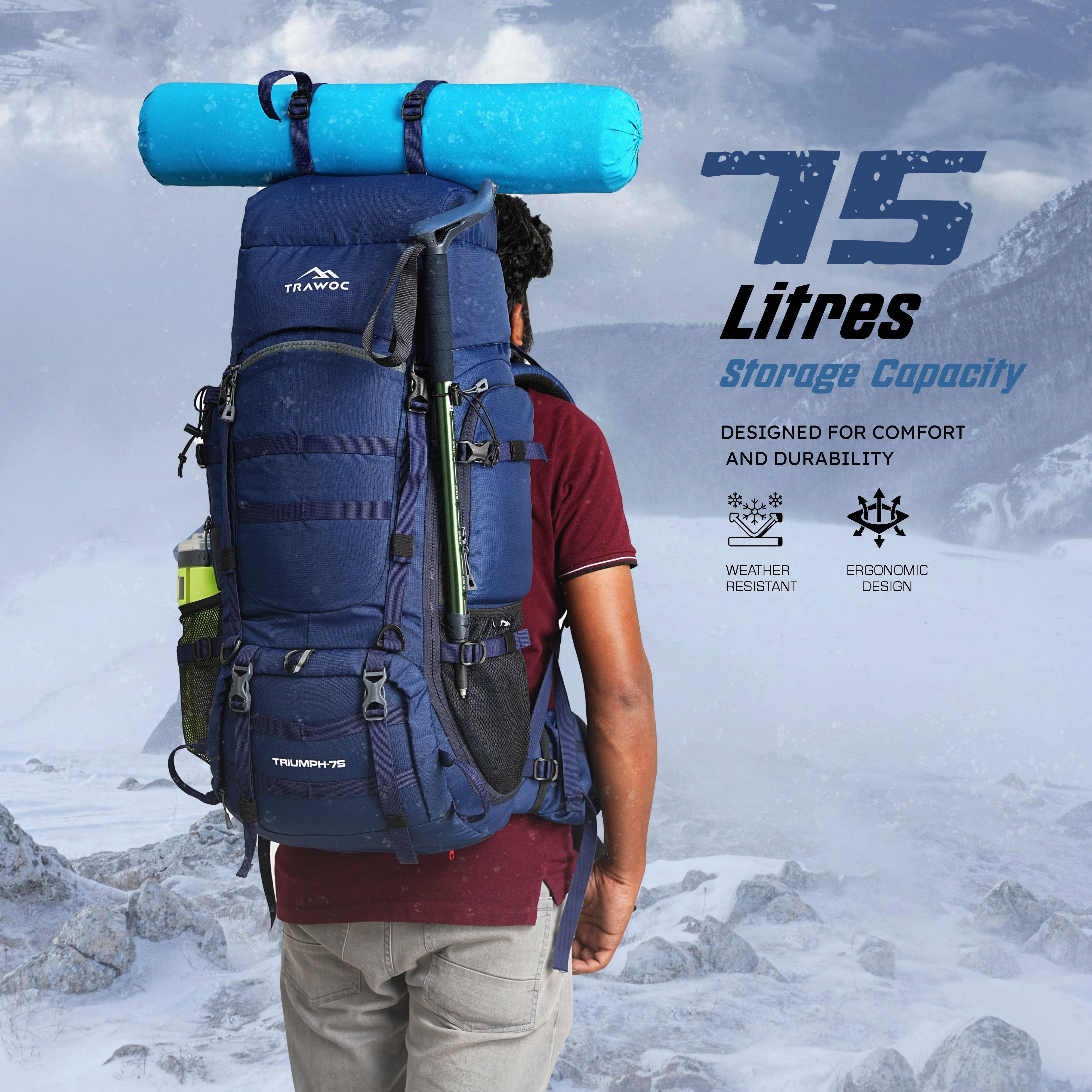 Triumph X 75 L Travel Backpack for Men & Women with Spacious Main Section & Shoe Compartment NavyBlue - TRAWOC