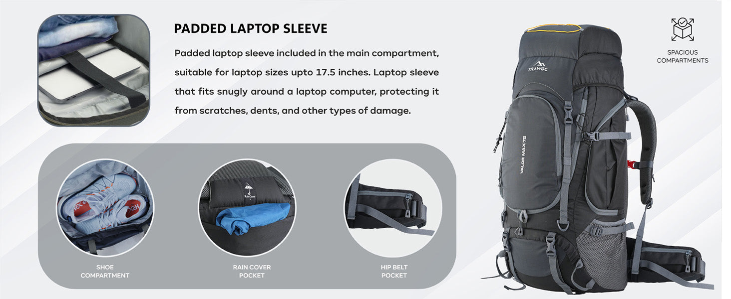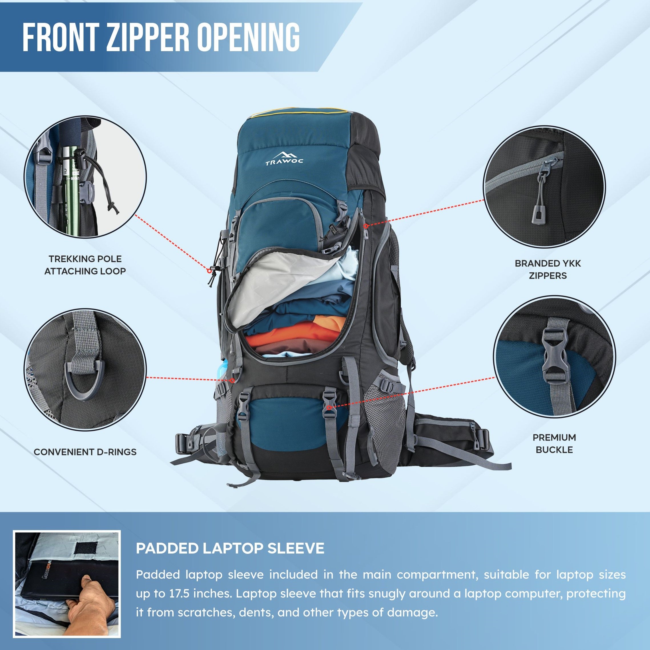 Multi-Purpose & Large Capacity: 75L backpack for men and women, ideal for travel, hiking, camping, and outdoor adventures with adjustable straps for a comfortable fit.