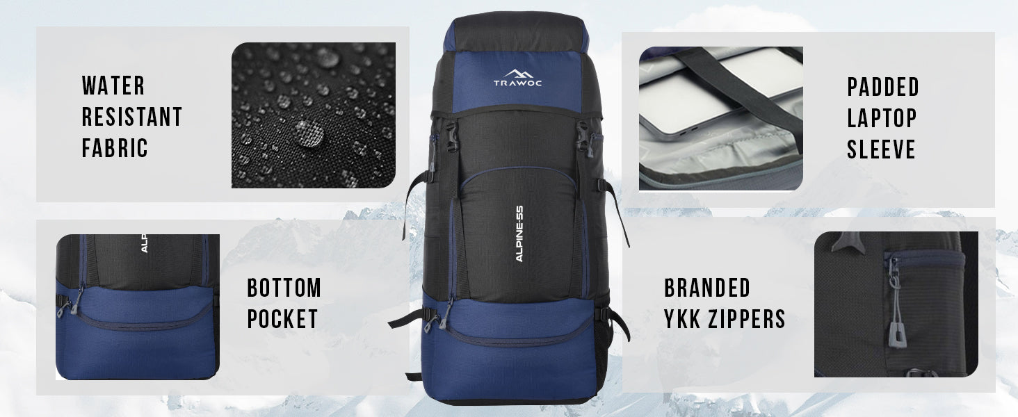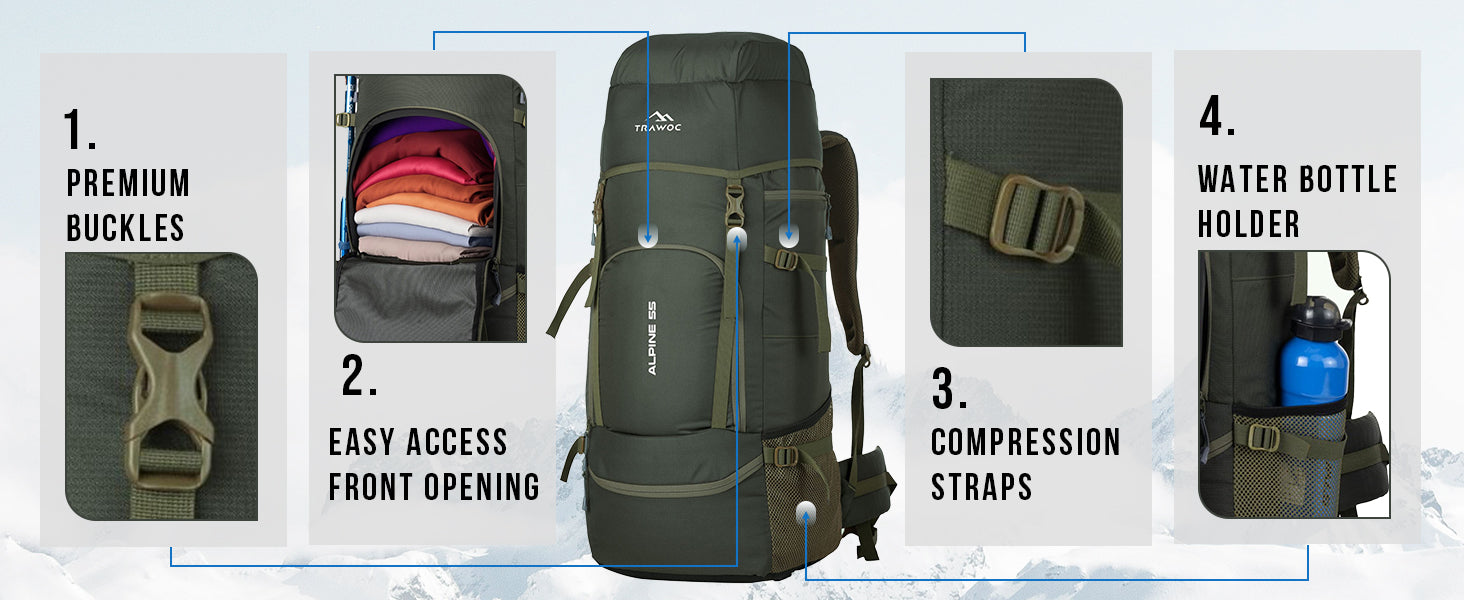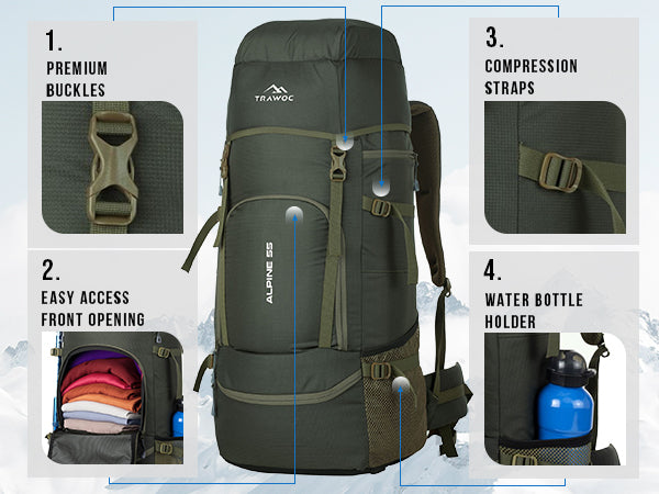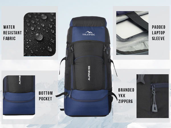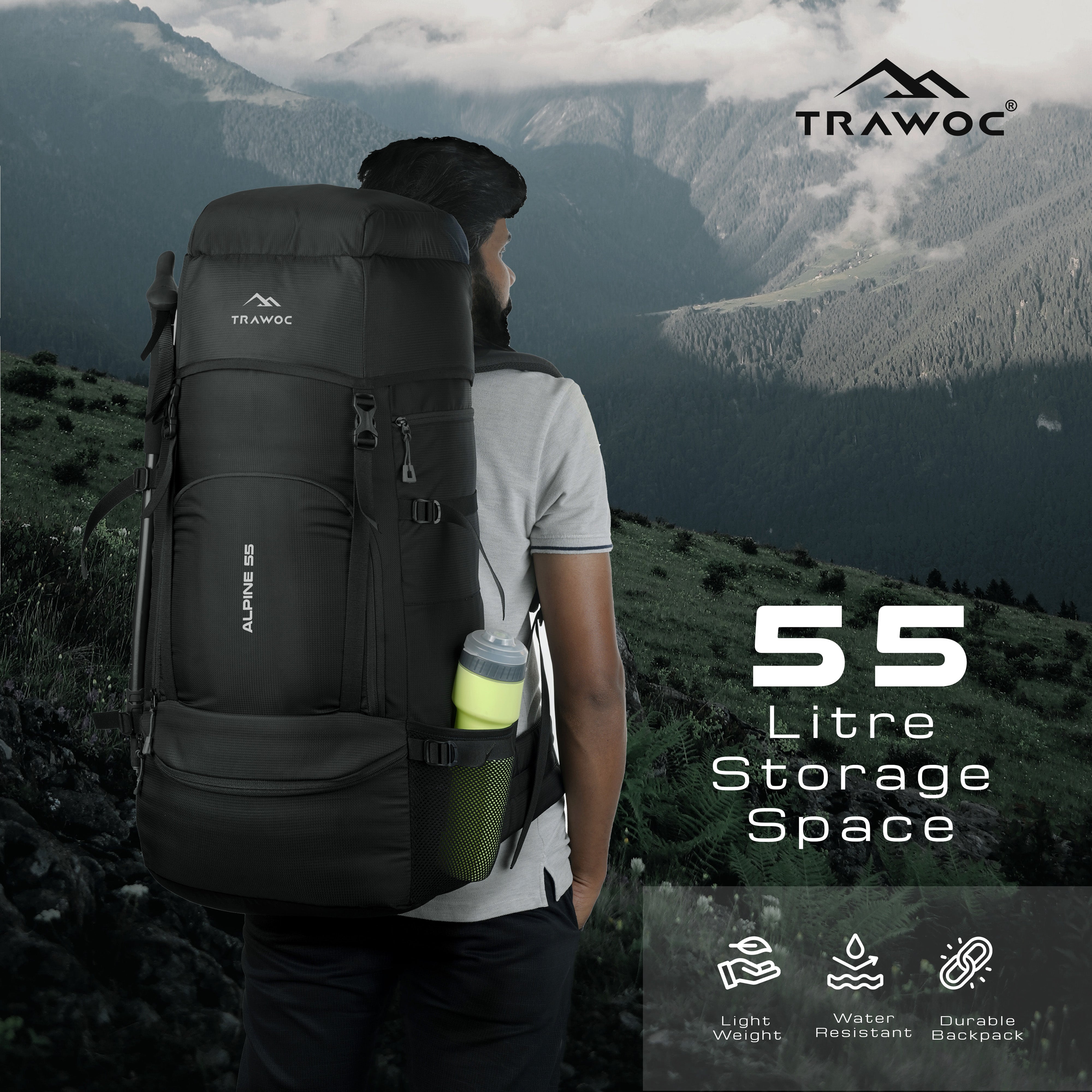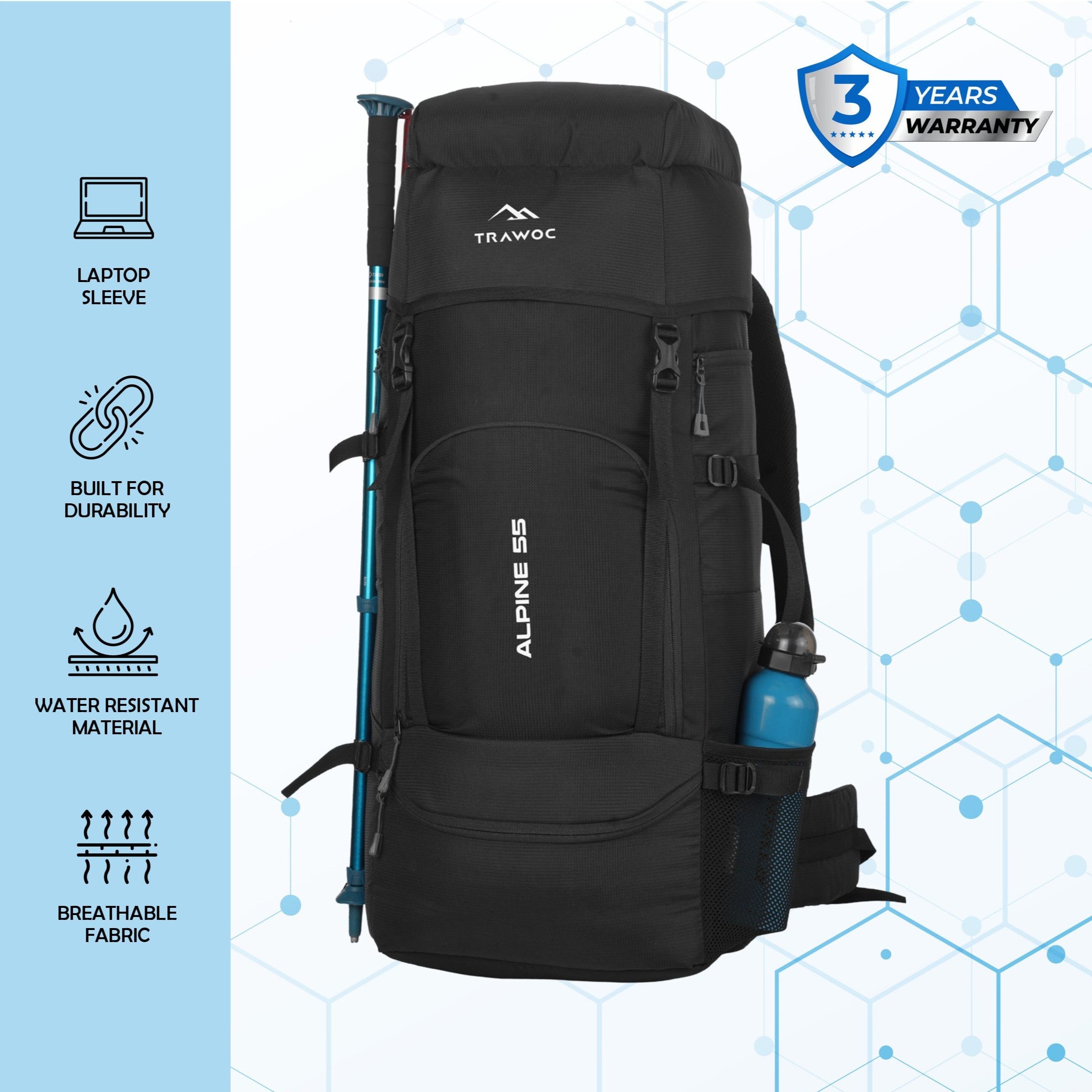 Spacious & Functional: 55L rucksack with multiple compartments and a laptop sleeve, ideal for trekking, camping, and long outdoor trips.