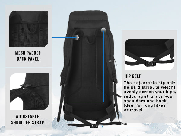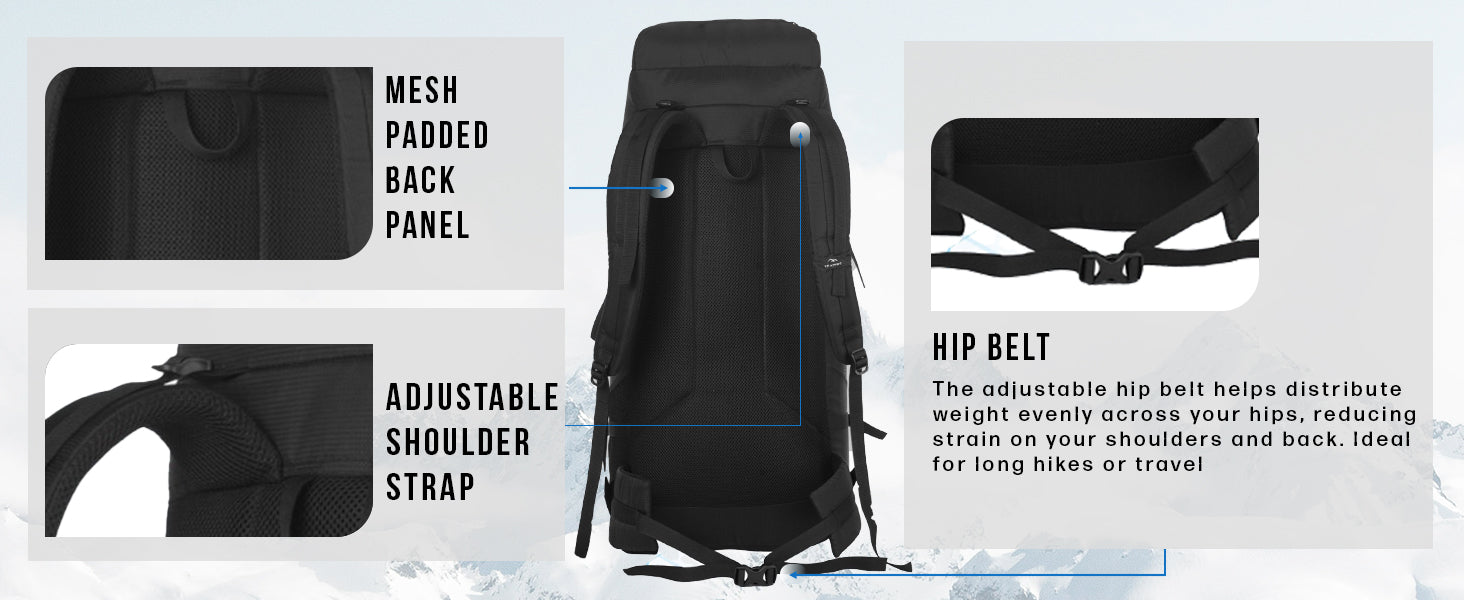 Breathable back padding ensures superior airflow, keeping you cool and sweat-free during long treks.
