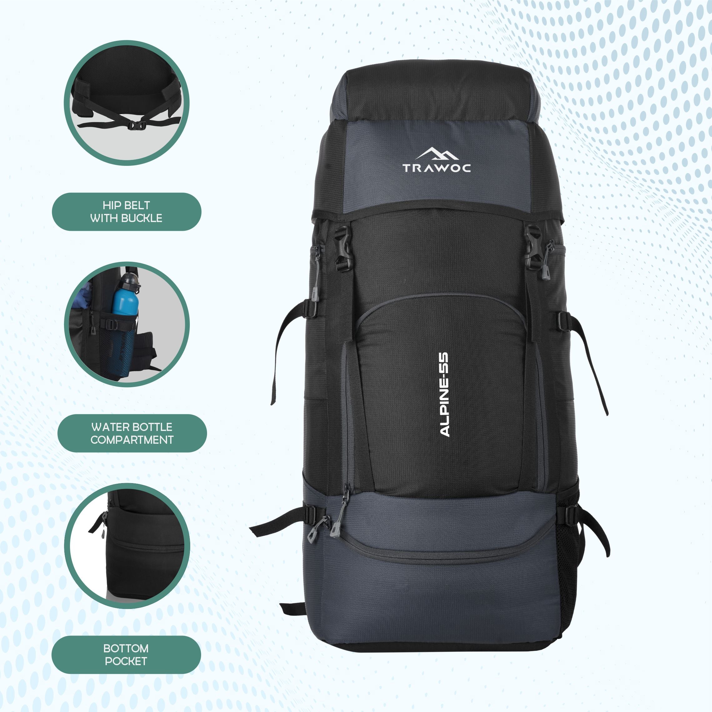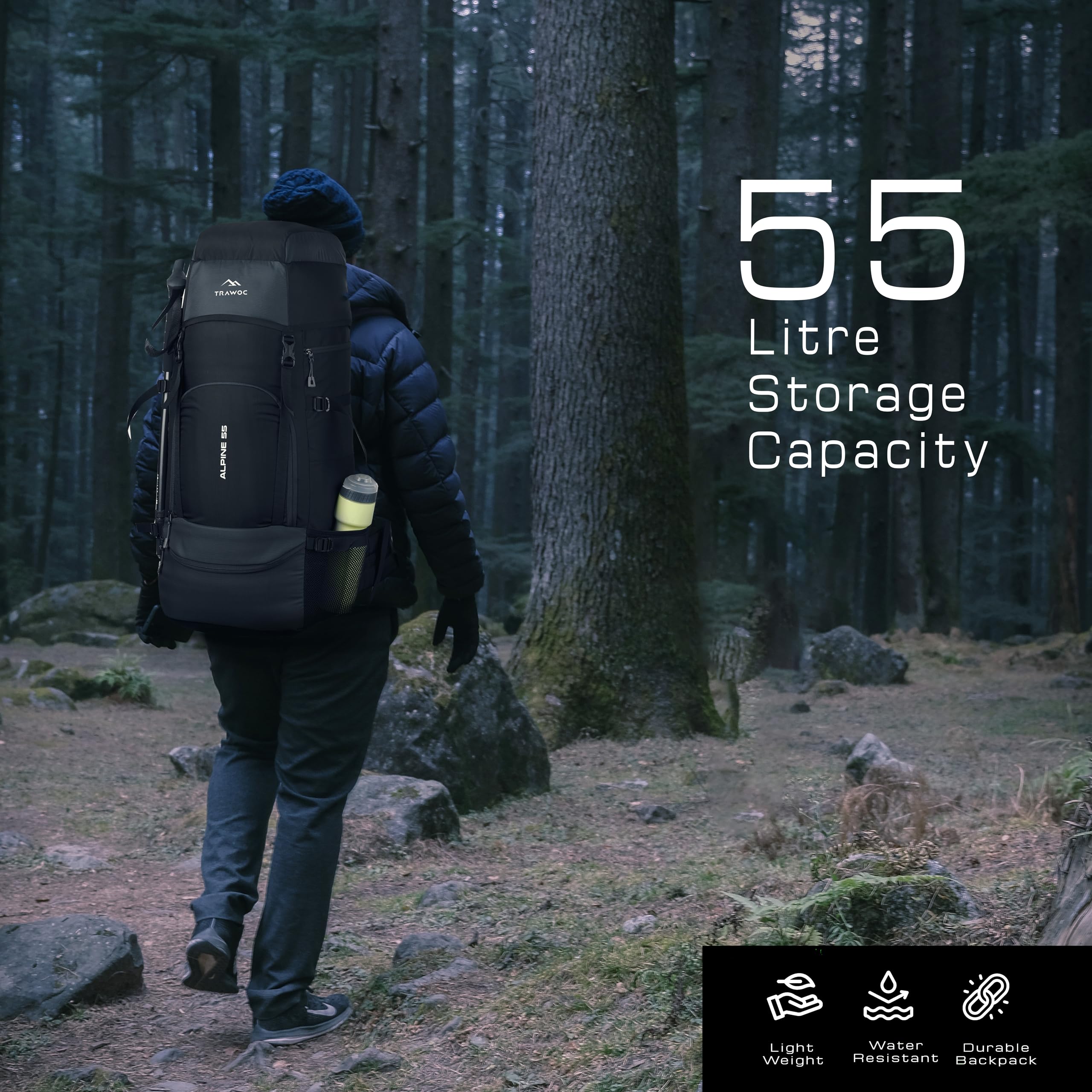 Spacious & Functional: 55L rucksack with multiple compartments and a laptop sleeve, ideal for trekking, camping, and long outdoor trips.