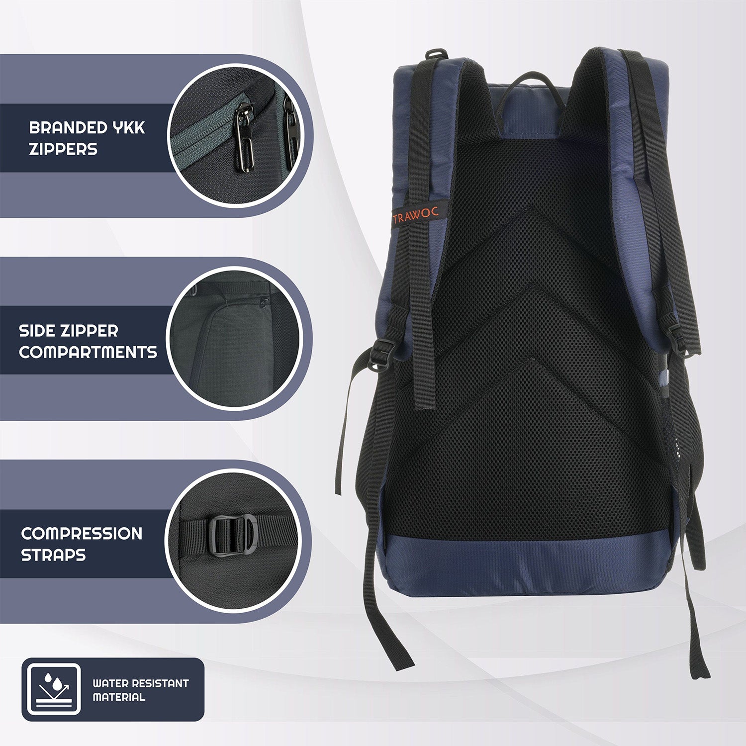 VIPER 40L Bag for Men and Women, Laptop Backpack with water resistant fabric - Navyblue - TRAWOC