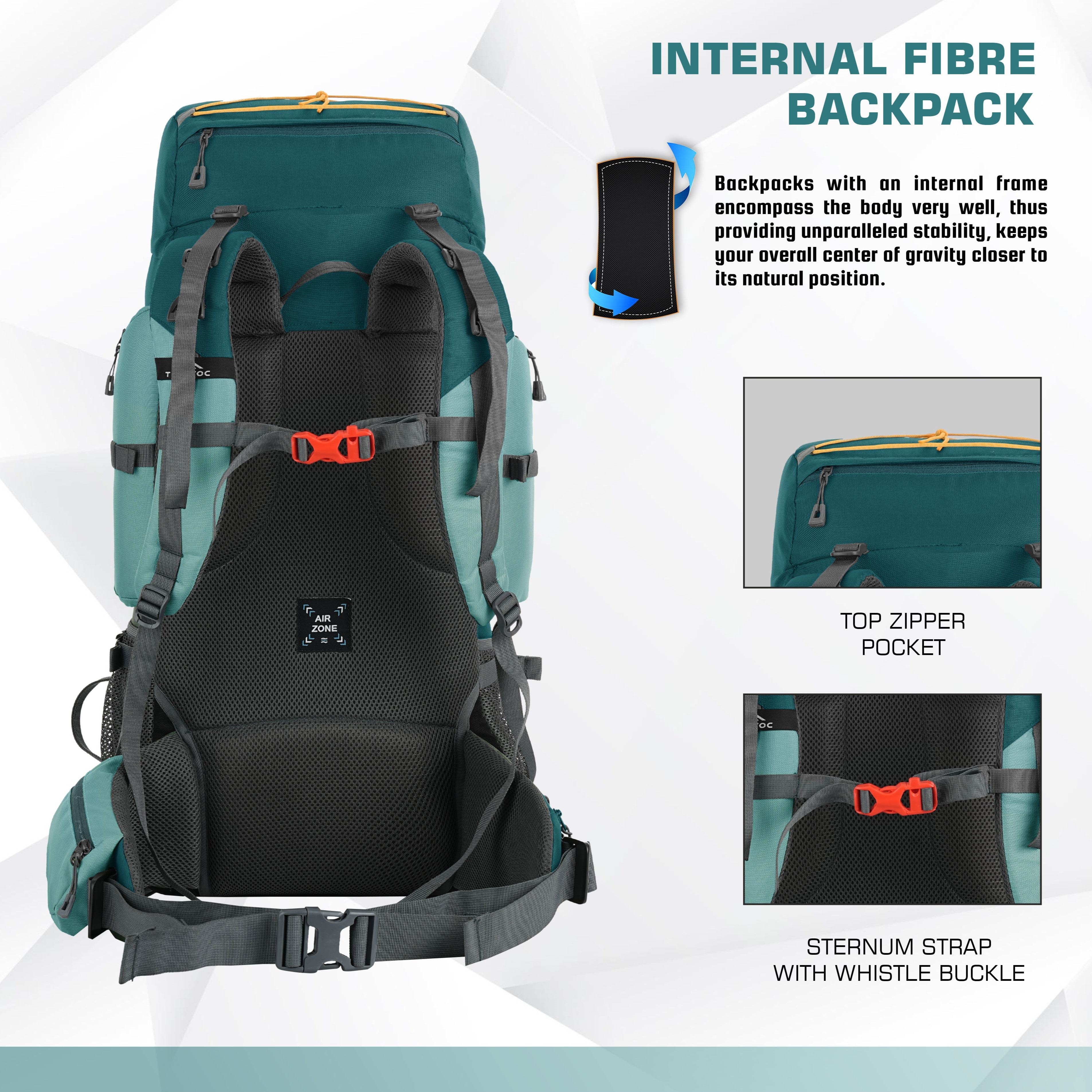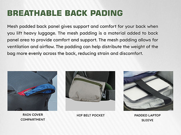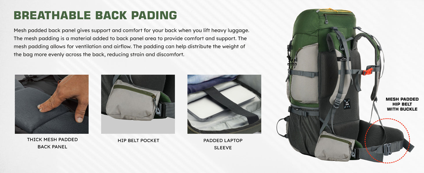 Breathable back padding ensures superior airflow, keeping you cool and sweat-free during long treks.