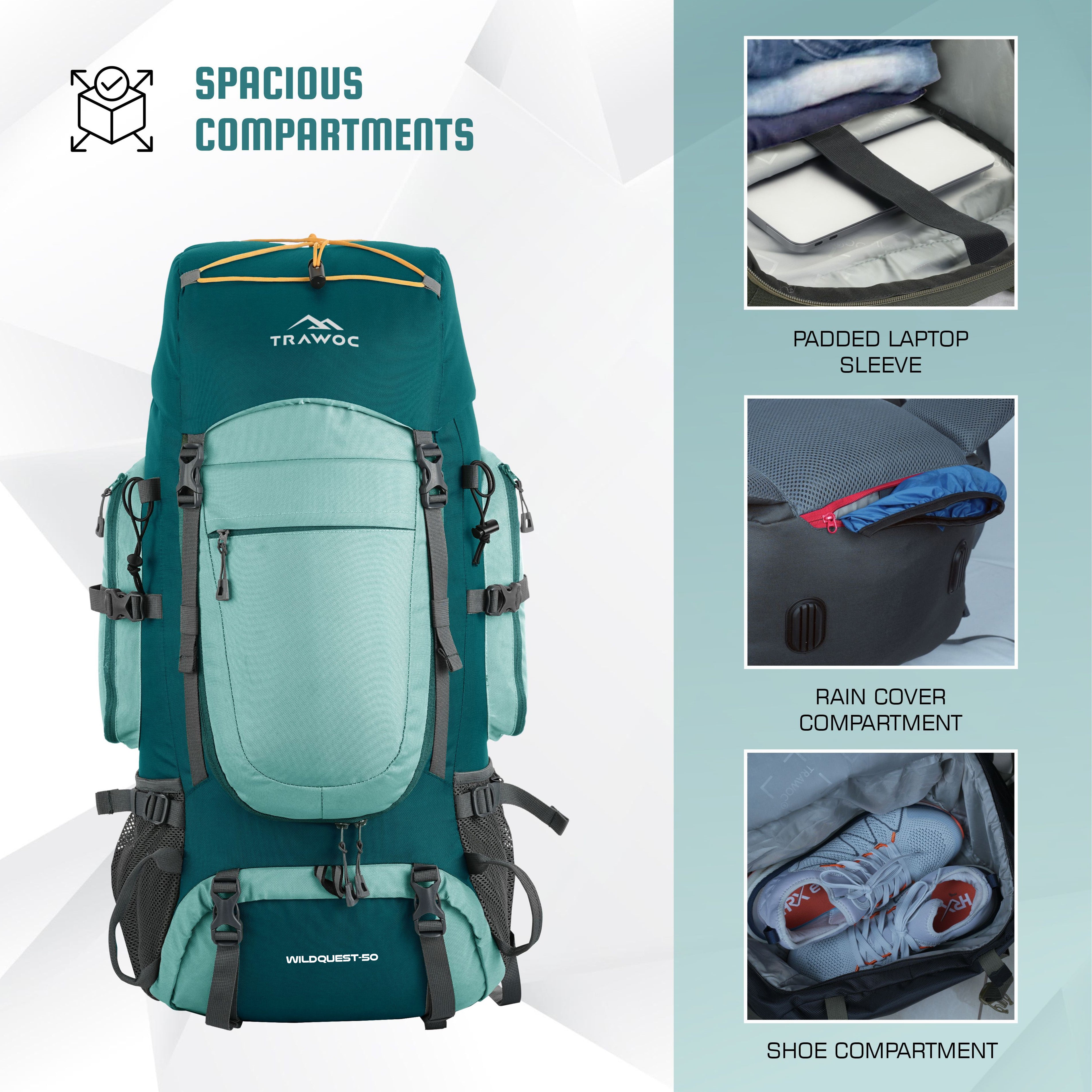 The WILDQUEST has a 50L capacity, offering ample space to carry all your essentials for day trips, weekend getaways, or longer journeys. It also features a dedicated laptop sleeve to keep your tech gear safe during your travels.