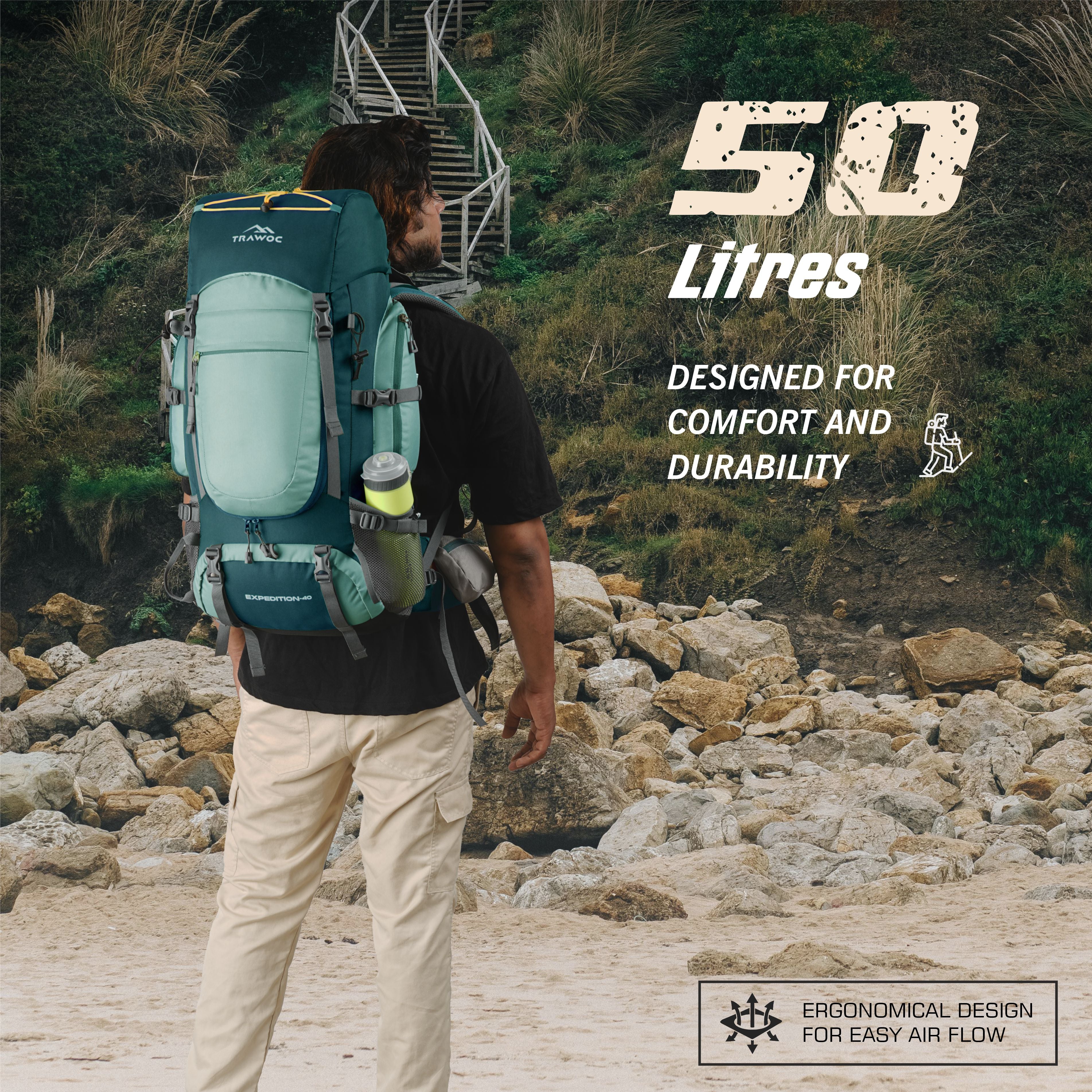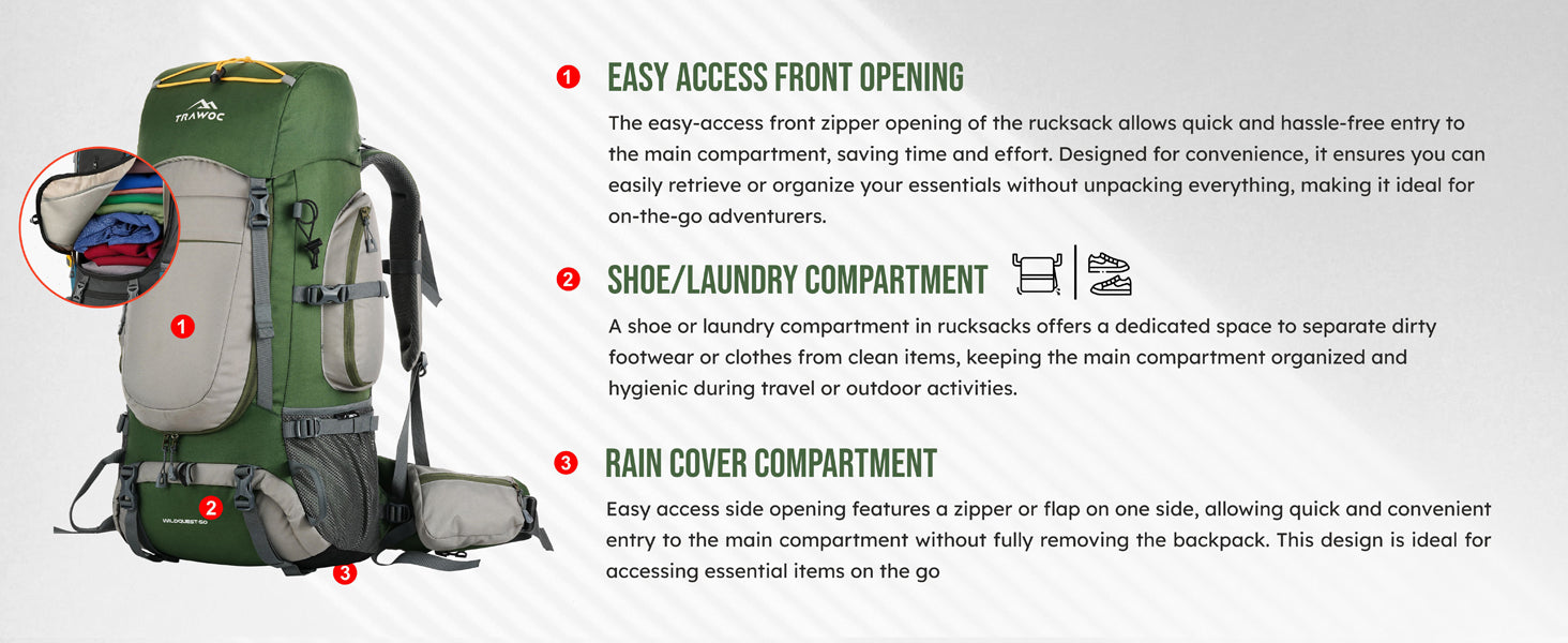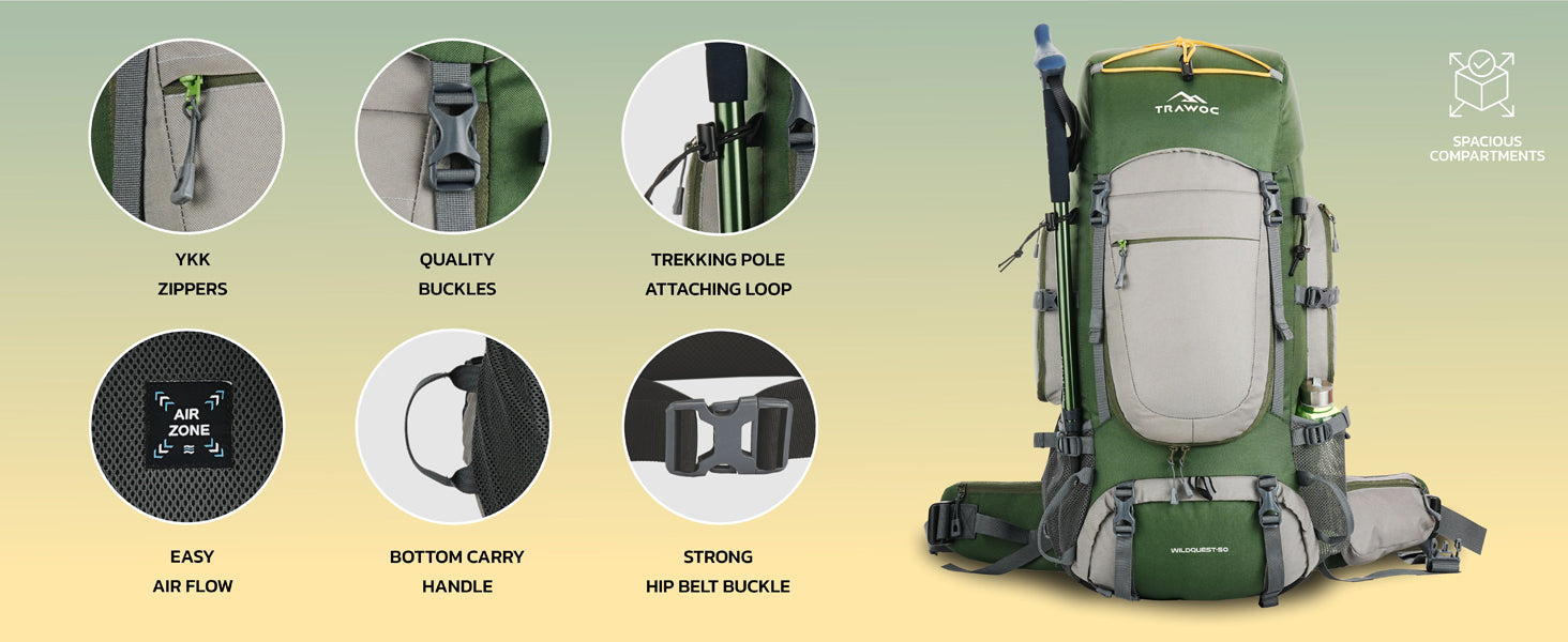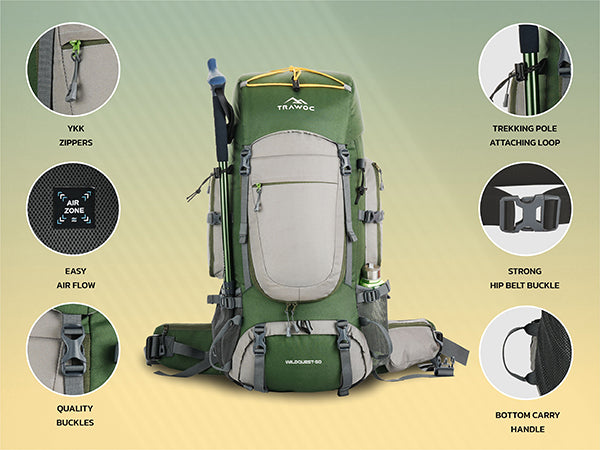 The TRAWOC WILDQUEST is made from highly durable material, making it suitable for all weather conditions. Whether it’s heavy rains or scorching heat, this backpack is built to withstand the elements while keeping your belongings safe.